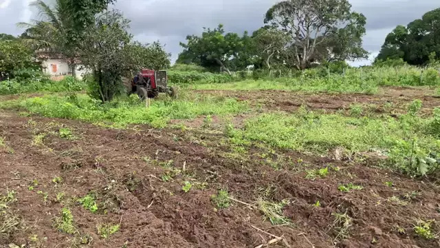 O tratorista do MF 265 ta muito alegre, no período da chuva não falta serviço para o trator
