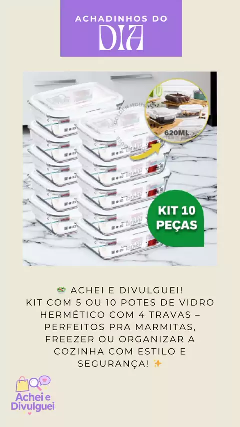 🥗 Achei e divulguei! Kit com 5 ou 10 potes de vidro hermético com 4 travas – perfeitos pra marmitas, freezer ou organizar a cozinha com estilo e segurança! ✨ 🔗 Link pra garantir o seu 👇🏻 https://s.shopee.com.br/2qJYWkX9bP #AcheiEDivulguei #AchadinhosShopee #PotesDeVidro #MarmitaPremium #OrganizaçãoNaCozinha