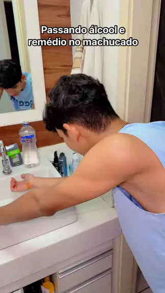 Passando remédio e álcool no machucado