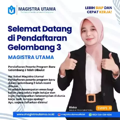 Magistra Utama Program Pendidikan dan Pelatihan 1 Tahun Lebih Siap dan Cepat Kerja Dibuka pendaftaran angkatan 28 gel 3. Ayo manfaatkan kesempatan ini Info lengkap 082 134 134 634 Kunjungi website www.magistrautama.co.id #kuliah #mahasiswa #suksesmuda #cepatkerja #program1tahun