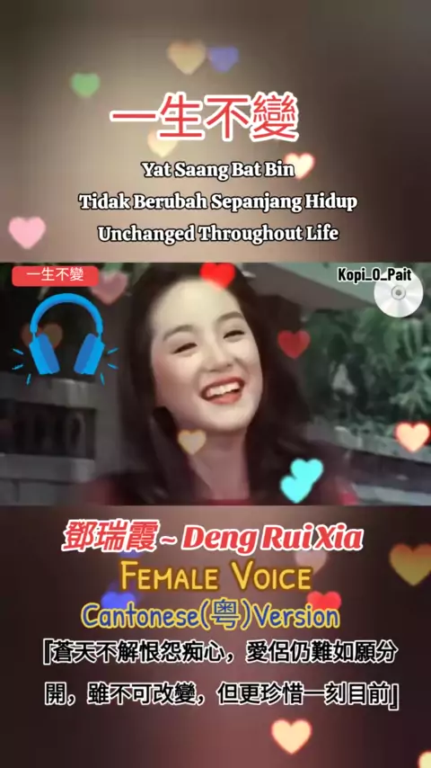 High Quality 🎧 鄧瑞霞 ~ Deng Rui Xia 一生不變 Yat Saang Bat Bin Tidak Berubah Sepanjang Hidup Unchanged Throughout Life 『蒼天不解恨怨痴心,愛侶仍難如願分開,雖不可改變,但更珍惜一刻目前』 #mandarinsong #chinesesong #cantonesesong #longervideos #nicesong #music #chinese # #enjoy #lyrics #liriklagu #songlyrics #lyricsvideo #動態歌詞 #拼音歌詞 #抖音歌曲 #kopi_o_pait #完整版 #一生不變