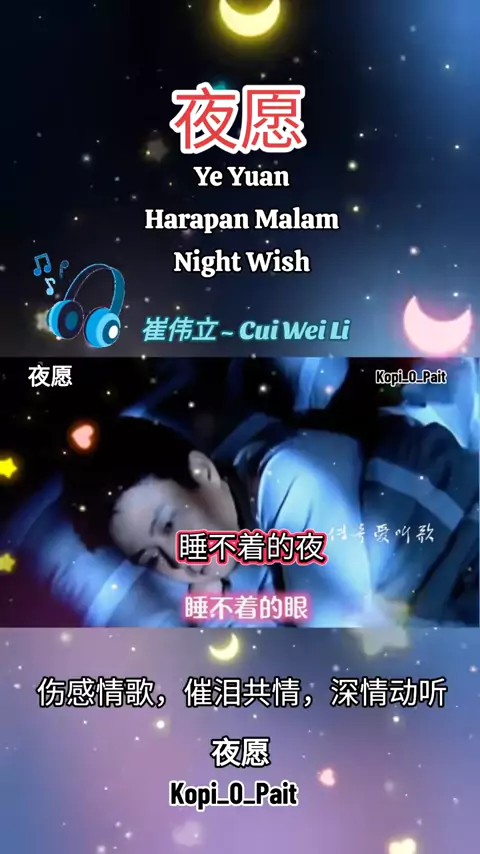 🎧 High Quality 崔伟立 ~ Cui Wei Li 夜愿 Ye Yuan Harapan Malam Night Wish 伤感情歌,催泪共情,深情动听 #mandarinsong #chinesesong #longervideos #nicesong #music #chinese # #enjoy #lyrics #liriklagu #songlyrics #lyricsvideo #動態歌詞 #拼音歌詞 #抖音歌曲 #kopi_o_pait #完整版 #夜愿
