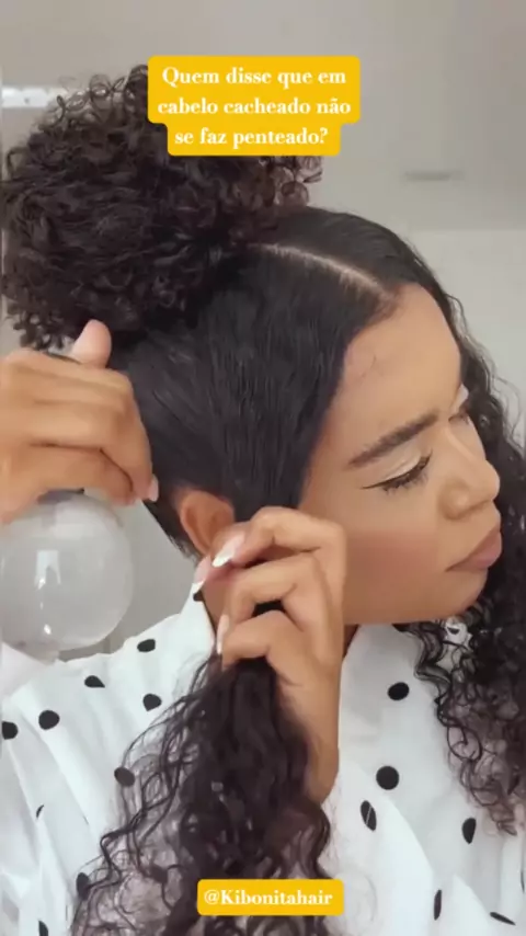 como fazer um coque em cabelo cacheado. #Cabelokwai #Fashon #cacheado #hhairstylemakeup #beleza