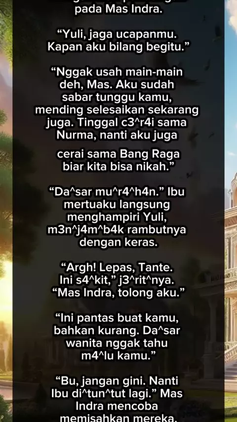 “Mau nikah sama Indra? Silahkan tapi setelah Indra dan Nurma cerai, Nurma pantas dapat laki-laki lebih baik.” “Bu, kenapa begitu? Ibu kok dukung aku sama Nurma cerai sih?” Mas Indra protes tidak terima. “Satu lagi. Jangan harap kamu dapat apa-apa dari Ibu, Indra. Jangan harap secuil pun harta yang kumiliki dan jangan harap kamu bisa menginjakkan kaki lagi di rumahku” Baca selengkapnya di Aplikasi KBM App Judul : Kau Rebut Suamiku Kunikahi Suamimu Penulis : andrianisilviaR #kaure...