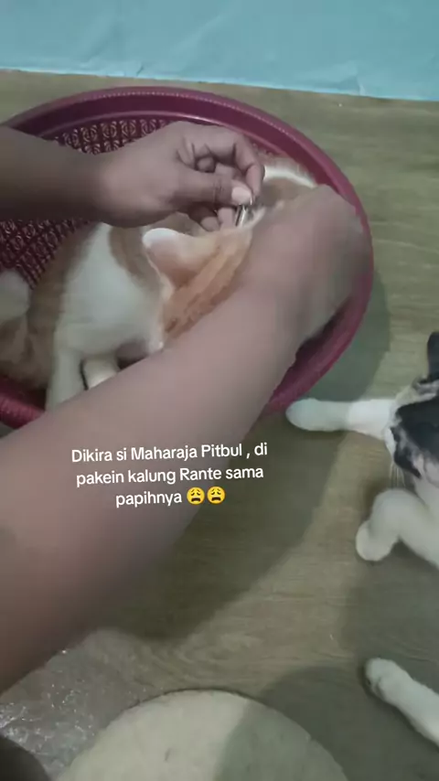 Gak tau dari kapan ini anak di pakein kalung sama papihnya 😩 #kucing #kucinglucu #kucingbolu