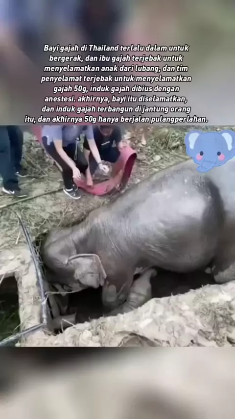 Bayi gajah di Thailand telah terjebak, gajah betina juga terjebak untuk menyelamatkannya, orang penyelamatan setelah dibius, berhasil menyelamatkan bayi gajah 50g!