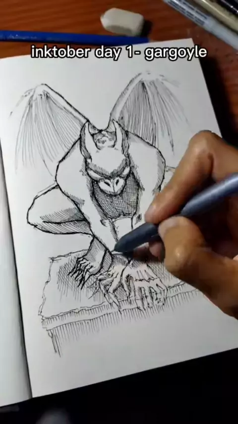 inktober day 1 - gargoyle#inktoberindonesia#inktober2022#inktober#drawing#artist#art#illustration##artistsof#artwork#lineart#krulisme