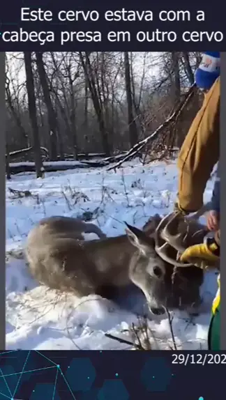 Este cervo estava com a cabeça presa em outro cervo #noticias #noticiasocial #notíciaspositivas