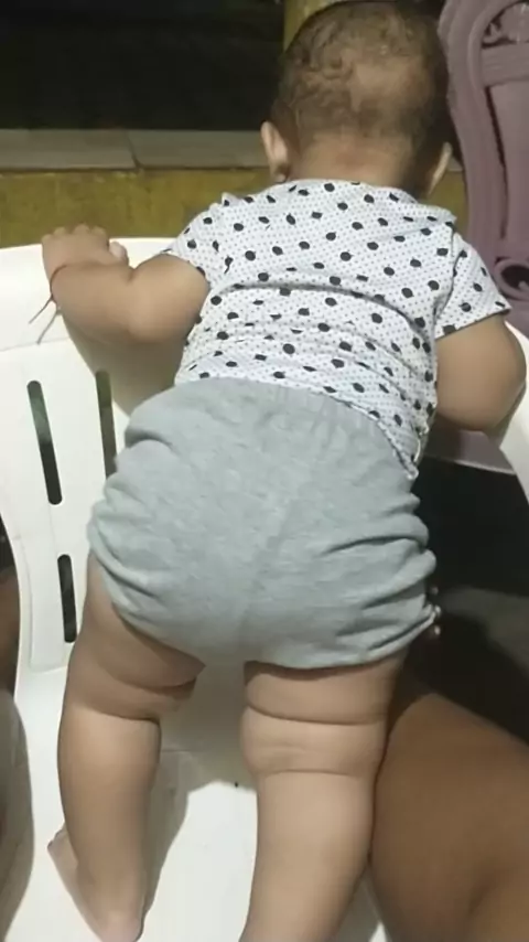 primeira vez que fica em pé sozinha
