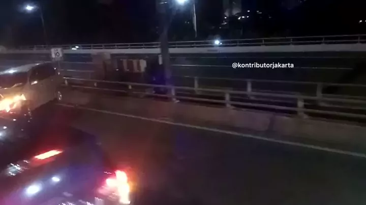 Adq yg tau kejadiannya bagaimana.??? Lokasi di jembatan tol Slipi arah Cikampek, mini bus melintang tersangkut di pembatas jalan . Vid : dedi #jakarta #kontributorjakarta #toldalkot #kecelakaan