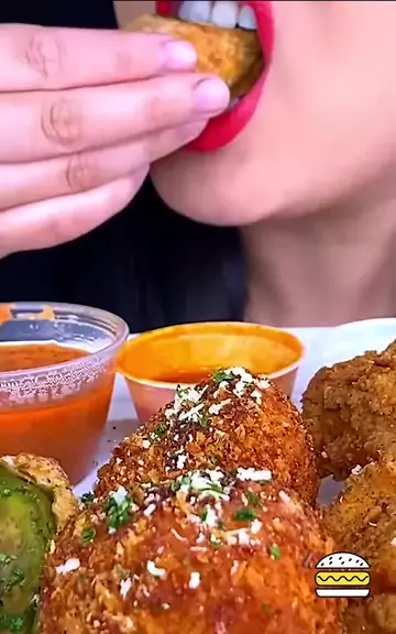 ASMR BUFFALO FRIED CHICKEN, CHEESE BALLS, AVOCADO EGGROLL😄😊😍#asmr