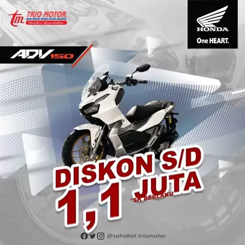 Januari ada yang bikin happy! Special buat kamu ada diskon hingga Rp 1,1 juta buat Si Keren, Matic Premium ini brosis! Buruan kepoin di dealer Honda terdekat di kota kamu! #Adv150 #TrioMotor #OneHeart #SatuHati #PromoHonda #DiskonHonda