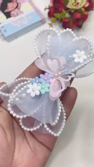 Laço luxo fácil medidas Fita organza com pérolas 38mm 4x12cm -laço gravatinha 1x18cm #lacos #artesanato #lacosdecabelo #tutorial