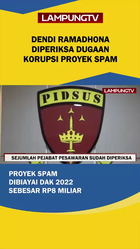 BANDARLAMPUNG (5/9/2025) – Mantan Bupati Pesawaran, Dendi Ramadhona, diperiksa Kejaksaan Tinggi (Kejati) Lampung terkait kasus dugaan korupsi proyek Sistem Penyediaan Air Minum (SPAM) senilai Rp8 miliar tahun anggaran 2022. Dendi Ramadhona tiga di Gedung Pidsus Kejati Lampung Kamis siang, 4 September 2025. Ia diperiksa mulai petang hingga tengah malam pukul 23.49 WIB. Mantan bupati Pesawaran ini diminta keterangan seputar regulasi dan kewenangan proyek SPAM yang dikelola Dinas PUPR Pesawaran ta...
