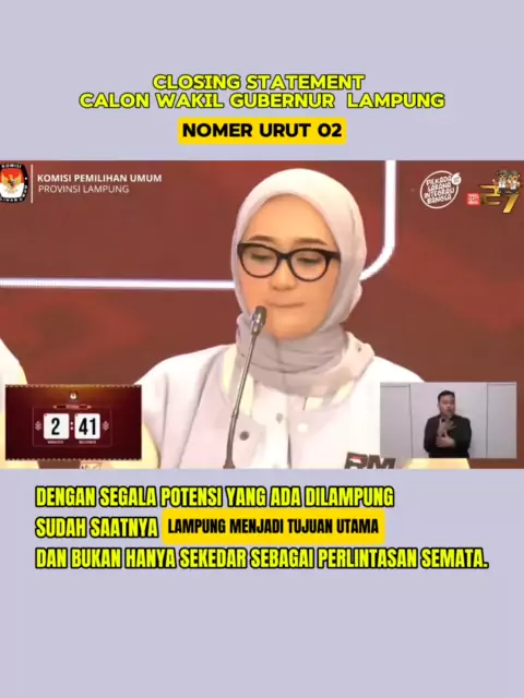 Closing Statement Mbak Jihan Di Debat Perdana Calon Gubernur dan Calon Wakil Gubernur Lampung 2024. #pilkadalampung #rmdgubernurlampung2024 #calongubernurlampung #gubernurmuda #RMD #Rahmatmirzanidjausal #jihannurlelachalim