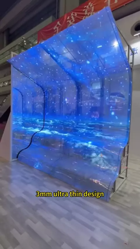 This is flexible LED transparent film screen 3mm ultra-thin design Transparency 90% No structure required Directly attach to glass for installation Turn on the power to play the video#ledtransparentfilm#leddisplay#ledtransparencescreen#ledglassscreen#ledwall#filmtransparent#ledfilm#HTURGBFILM#HTURGB