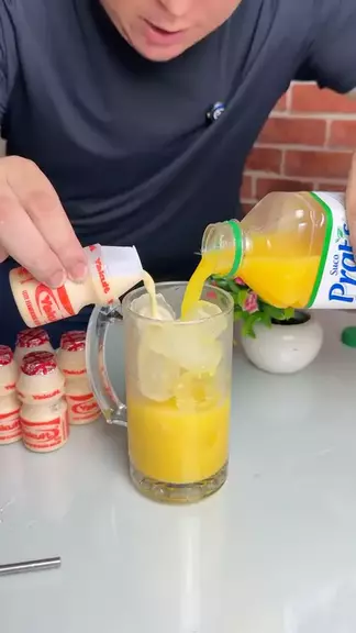 bebida Yakult com suco de laranja ! #PAULOGAMER #cocktail #cocktails #caps #gelo