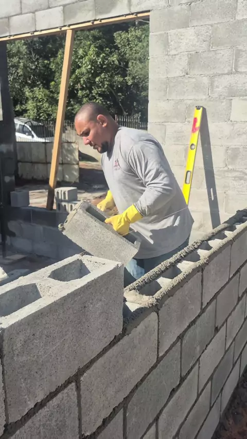 como assentar bloco de cimento vazado #obra #pedreiro #construção #bloqueiro #construction