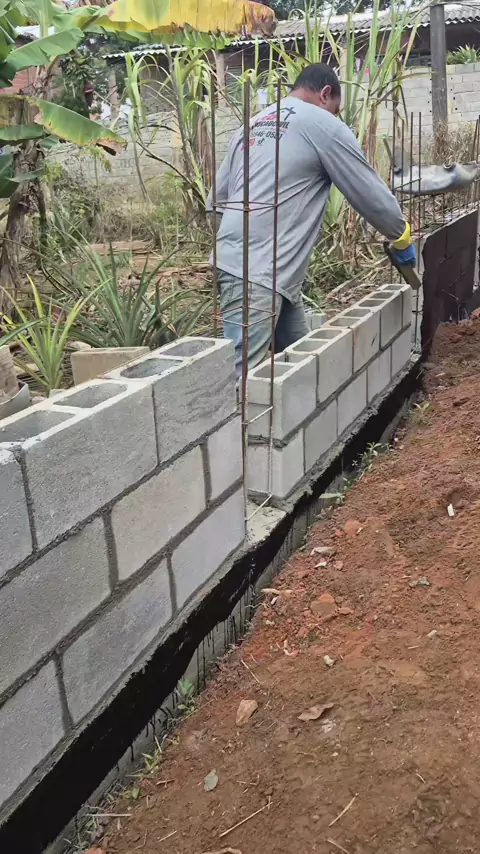 bloqueiro assentando bloco de concreto vazado #obra #pedreiro #construção #bloqueiro #construction