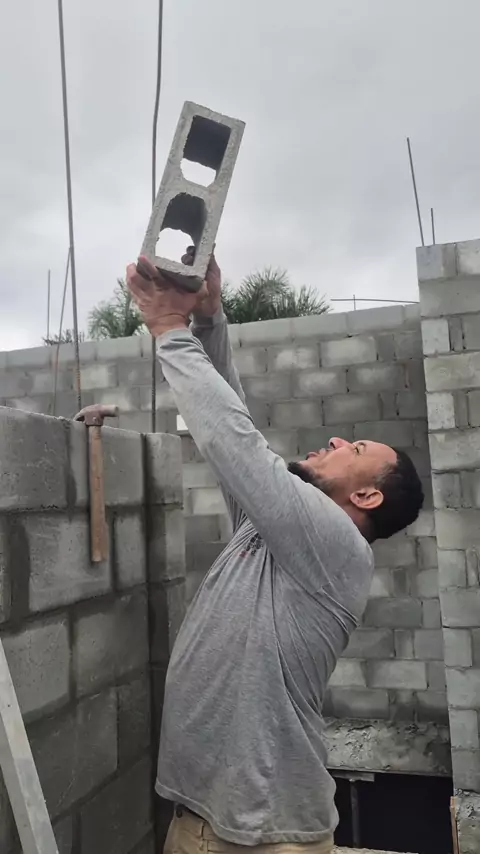 como colocar os ferros de graute na alvenaria de bloco de concreto vazado #obra #pedreiro #construção #bloqueiro #construction