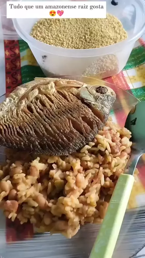 Comida no Amazonas 😍 Peixe Pacu, Farinha Uarini Ovinha, Baião e Vinagrete.... #voleiNoKwai #cancelado #peixefrito #criadordeconteudos #kwai