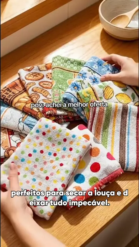 Transforme sua cozinha com este kit de panos de prato estampados! #panosdeprato #cozinhaorganizada #estampasexclusivas #algodao #donadecasa