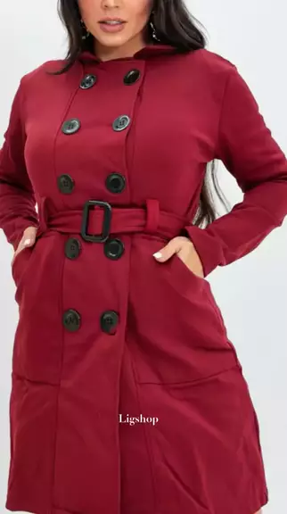sobretudo de moletom com cinto, botões e bolso nas laterais