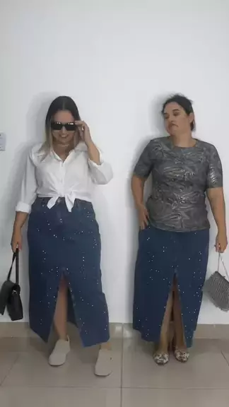 Look plus size estiloso com saia jeans midi e camisa branca #moda #plussize