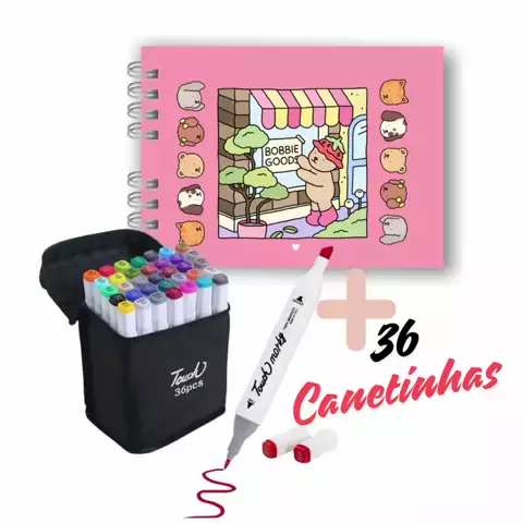 livro de colorir bobbie goods 50 folhas 180gr caderno de desenho Bob bobi god + kit canetinha colorida 24/36/48/60/80 #materialescolar #papelaria #SHOPEE #link #papelariapersonalizada