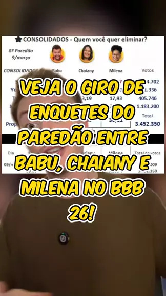 Veja o giro de enquetes do Paredão entre Babu, Chaiany e Milena no BBB 26! #bbb26 #noticias #enquete