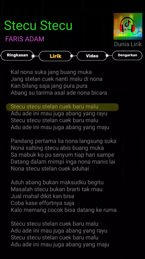 Lirik Lagu Stecu Stecu (Faris ADAM) . . . . . .#liriklagu#lirik#laguviral#lagu##laguterbaru#viral#liriklagufiral#stecustecu