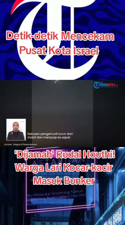 BERITA Hari Ini Detik-detik Mencekam Pusat Kota Israel 'Dijamah' Rudal Houthi! Warga Lari Kocar-kacir Masuk Bunker TRIBUN-VIDEO.COM - Pasukan Houthi Yaman menembakkan rudal ke pusat kota Tel Aviv, pada Jumat (27/9/2024) dini hari. Meski berhasil dicegat oleh sistem pertahanan Iron Dome, serangan tersebut membuat langit bergemuruh. Warga Israel pun panik hingga berlarian berebut bunker untuk mengungsi. Detik-detik kepanikan warga Israel itu terlihat dalam sejumlah video. Dalam video tersebut, ta...