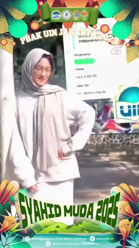 ✨Mahasiswa Masa Kini untuk Dunia Masa Depan: Menebar Cinta, Merawat Semesta ✨ Halo, Syahid Muda! Saya Nayla Majid dari Fakultas Ekonomi dan Bisnis Universitas Islam Negeri Syarif Hidayatullah Jakarta, Program Studi Perbankan Syariah Angkatan 2025. Sebagai mahasiswa masa kini, aku percaya bahwa langkah kecil kita hari ini bisa membawa perubahan besar di masa depan. "Menjaga semesta adalah pekerjaan masa kini demi masa depan" -B.J Habibi #UINJakarta #DEMAUINJKT #SyahidMuda2025 #PBAK2025 #Kabi...