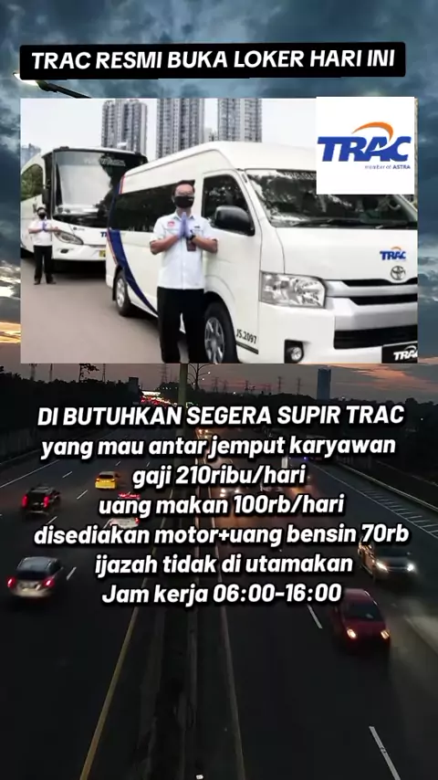 DI BUTUHKAN SEGERA SUPIR TRAC yang mau antar jemput karyawan gaji 210ribu/hari uang makan 100rb/hari disediakan motor+uang bensin 70rb ijazah tidak di utamakan Jam kerja 06:00-16:00 #tracindonesia #openloker #lokerterkini #loker2025 #lokertrending #indonesia🇮🇩 #berita#terbaru#hari#ini #viral # #masukberanda