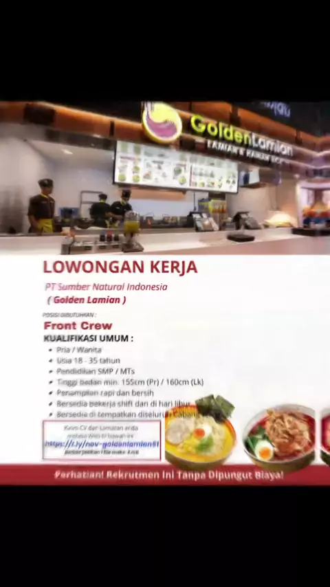 Loker pabrik lulusan SMP / MTs - sma / smk bisa daftar #infoloker #lokerpabrik #indofood #goldenlamian #bogasari