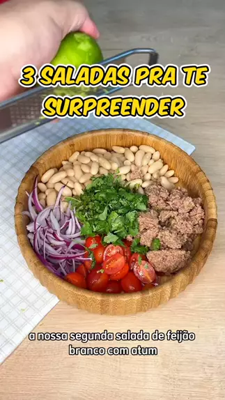 3 saladas super diferentes pra te surpreender 🥗 SALADA GREGA ➡️ INGREDIENTES: * 1 pepino * 1 tomate * 1/2 xícara de azeitonas pretas * 1/2 cebola roxa picadinha * Hortelã a gosto picadinho Molho de iogurte * 200 ml de iogurte natural * Suco de 1/2 limão * 1 colher de chá de mostarda * Sal e pimenta do reino ➡️ SALADA FEIJÃO BRANCO E ATUM • 1 xícara de feijão branco cozido • 1 lata de atum • 1/2 cebola roxa fatiada • Tomatinho cereja • Coentek picadinho • Raspas e suco de 1/2