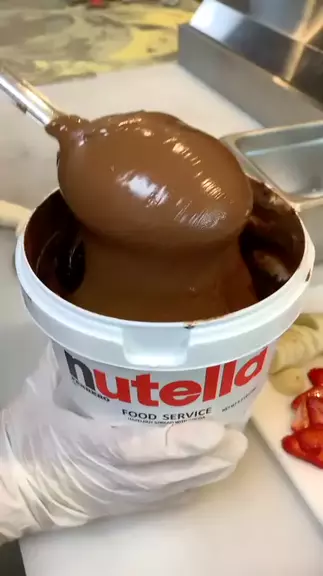 NUTELLA PIZZA topped w/ bananas & strawberries! π«ππ #nutella #pizza #dessert #banana #strawberry