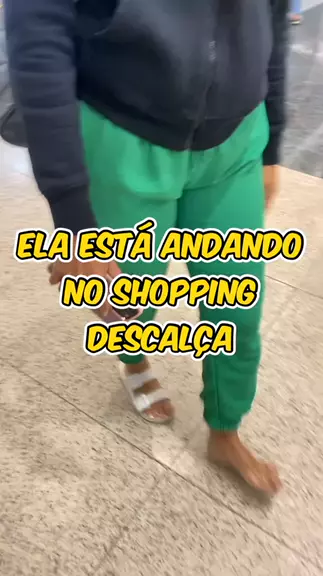 Ela está andando no shopping descalça