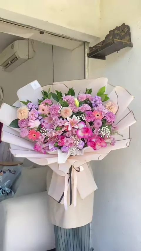 Membalas @Flowbouquetbali kalau yang ini pakai bunga asli ukuran human size #humansizebouquet #buketbesar #bukethumansize