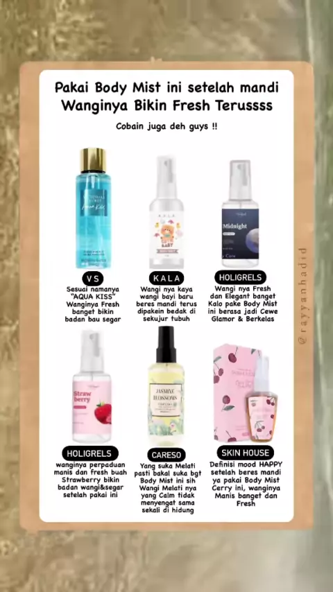 Kalo habis mandi pakai body mist ini badan auto wangi banget🥹🫶💗 #bodymist #bodymistholigrels #bodymistvictoriasecret #bodymistkala #caresofragrance