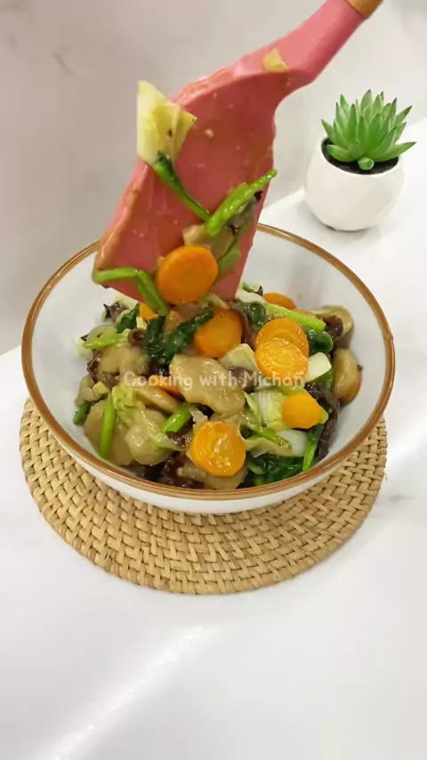 CAH SAYUR bahan 1: - 1 sdm saus tiram - 1 sdm kecap asin - 1 sachet Desaku Bawang Putih Bubuk - 1/2 sdt Ladaku Merica Bubuk - 1/4 sdt garam - 1 sdt gula pasir - 100ml air - 1 sdm maizena - 1 sdm air Bahan 2: - minyak goreng - 1/2 buah bawang bombai - 5 buah bakso sapi - 1 buah wortel (direbus sebentar) - 150gr sawi putih - 100gr sawi hijau - 25gr jamur keping kering #cahsayur #rudyspill_cahsayur #masakanrumahan