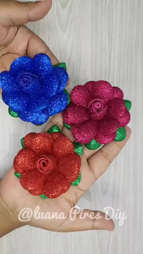 ROSAS GRANDES DE E.V.A COM GLITTER FACIL DE FAZER, PRA DECORAR SEUS ARTESANATOS . #artes #artesanatos #lembrancinhas #manualidades