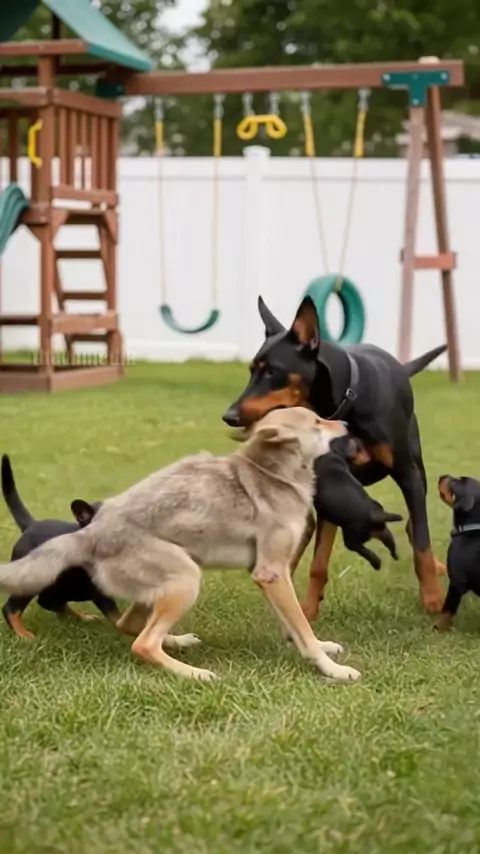 Doberman luta por seus filhotes!