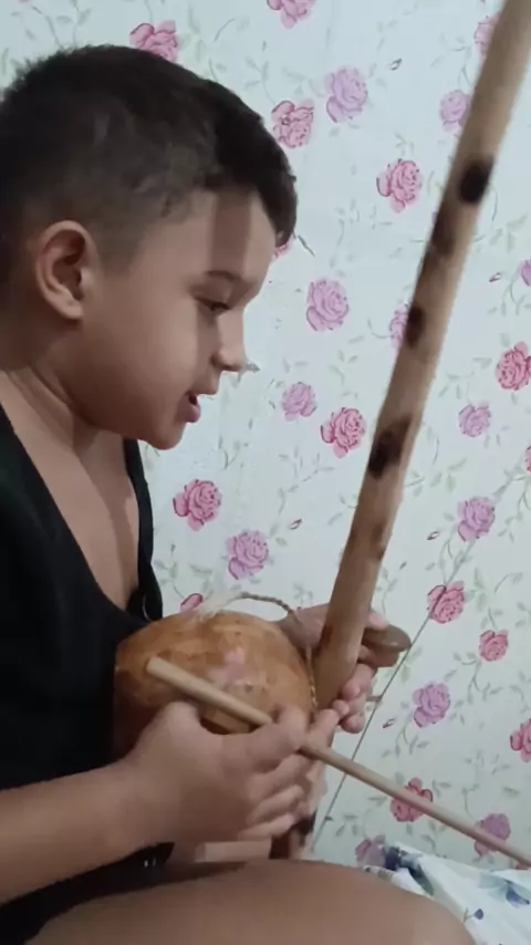 ensinando a mamãe como tocar berimbau 😅😊