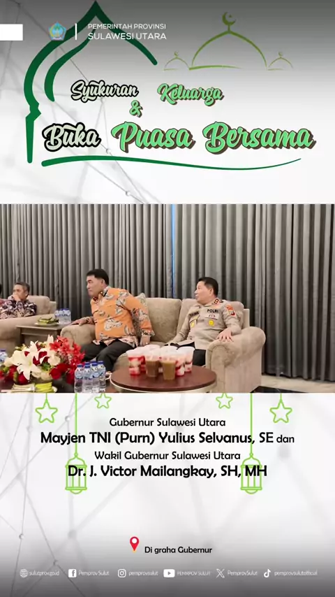 Syukuran Keluarga dan Buka Puasa bersama di Kompleks Rumah dinas Graha Gubernuran. Manado, 4 Maret 2025.#yuliusselvanuskomaling#victormailangkay#yskvictory#gubernursulawesiutara#wakilgubernursulawesiutara#sulutviral#sulutmajudansejahtera#satukomando#prabowopresiden2024#pemerintahsulawesiutara
