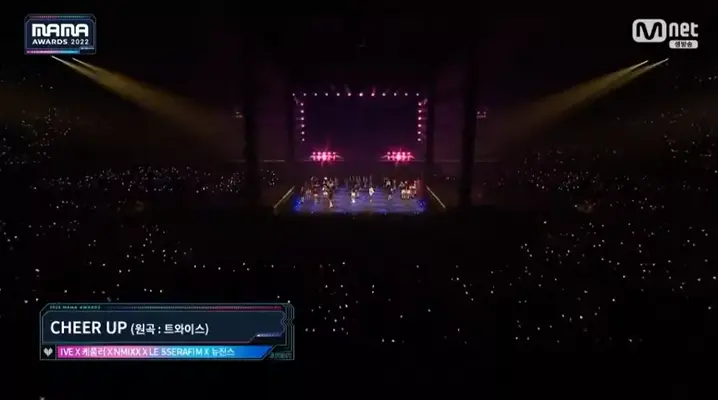 IVE, Kep1er, NMIXX, NEW JEANS e LE SSERAFIM matando todos os ggstan do coração com a performance icônica "CHEER UP" do TWICE no #MAMA2022. #climadacopa #fy #kpop #Qatar