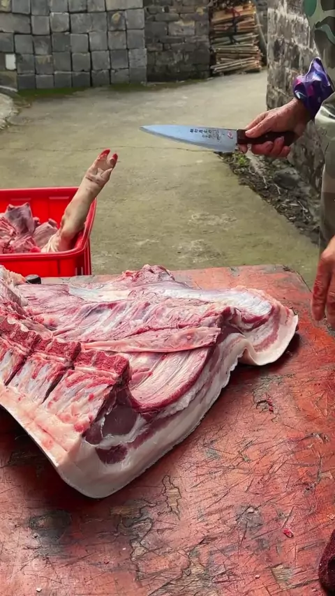 É assim que a carne de porco local deve parecer, gorda, mas não farta, fina, mas não lenha, as grandes cidades não podem mais encontrar # carne de porco local