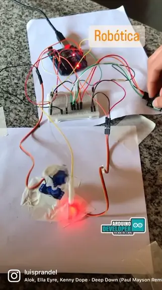 Aula de Rob贸tica. Minirrob么 feito de LED e microservo controlados por um Arduino Uno. #physics #robotics #science #f铆sica #robotica