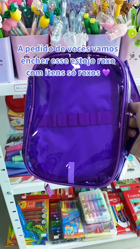 A pedido de vocês, desafio cumprido, estojo todo roxinho 🥰 #papelaria #Luivins