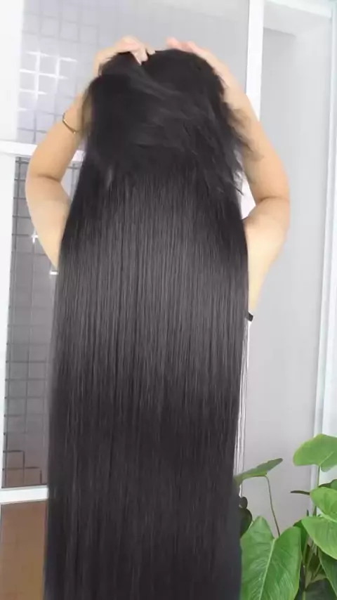 extensão de cabelo em fibra orgânica wig liso aplique tic tac para volume #viraliza